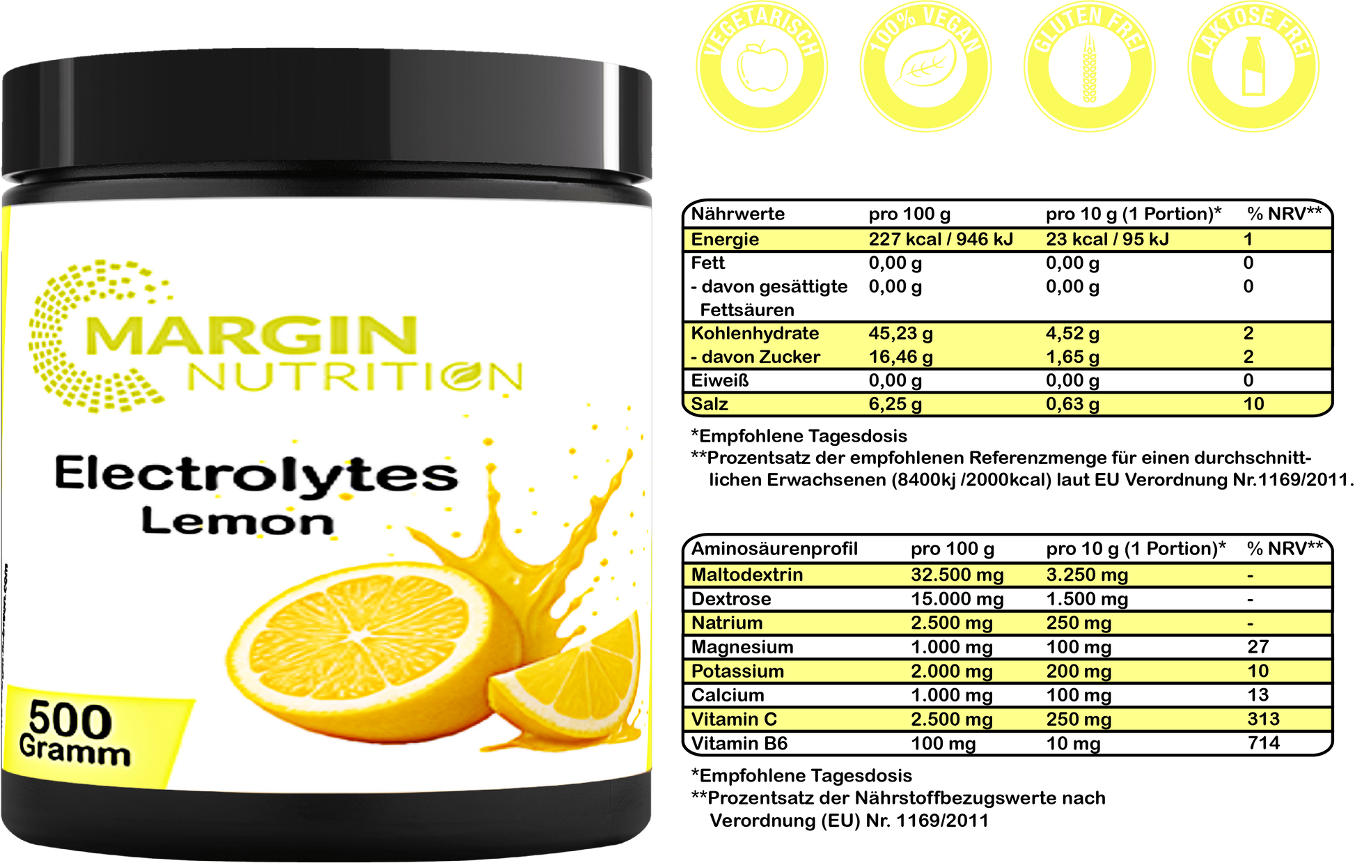 Electrolytes Lemon – Elektrolytpulver für Sport & Hydration | 250 g, 500 g, 2×500 g, 4×500 g