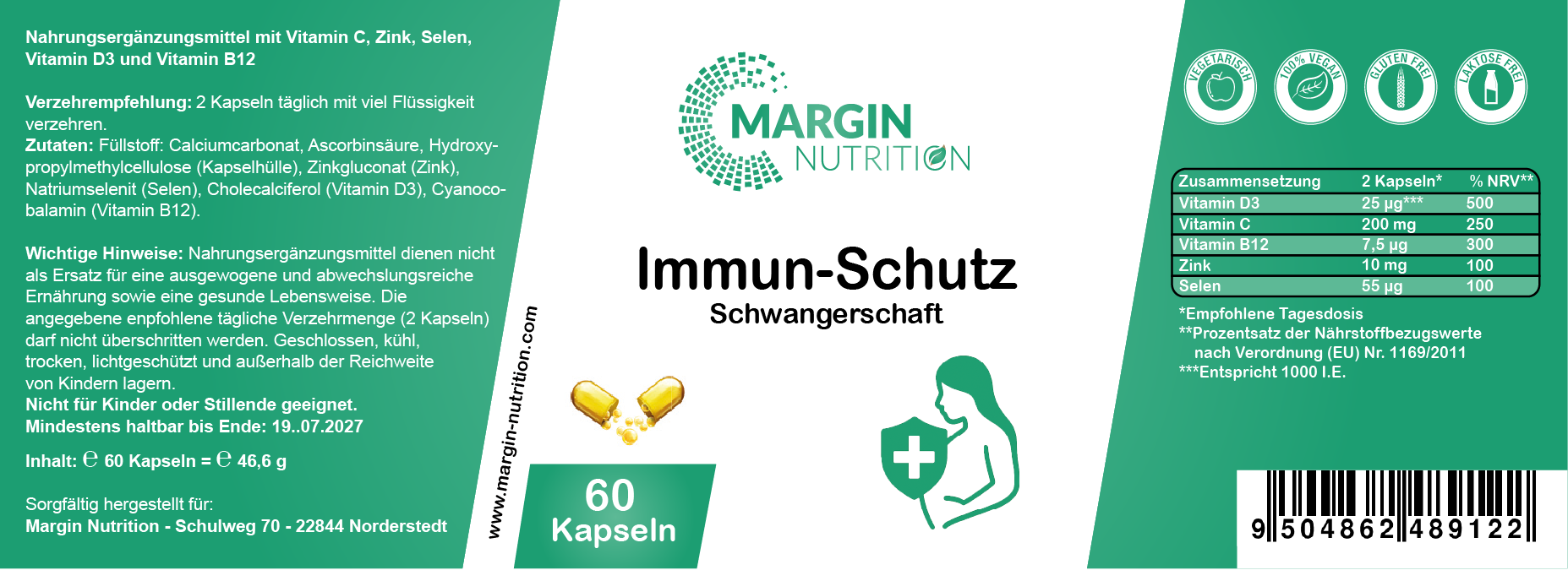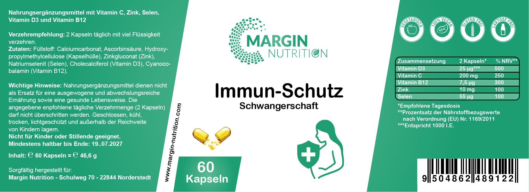 Immun-Schutz Schwangerschaft – Mit Vitamin C, Vitamin D3, Zink, Selen und Vitamin B12 | 30, 60, 2×60, 3×60 vegane Kapseln