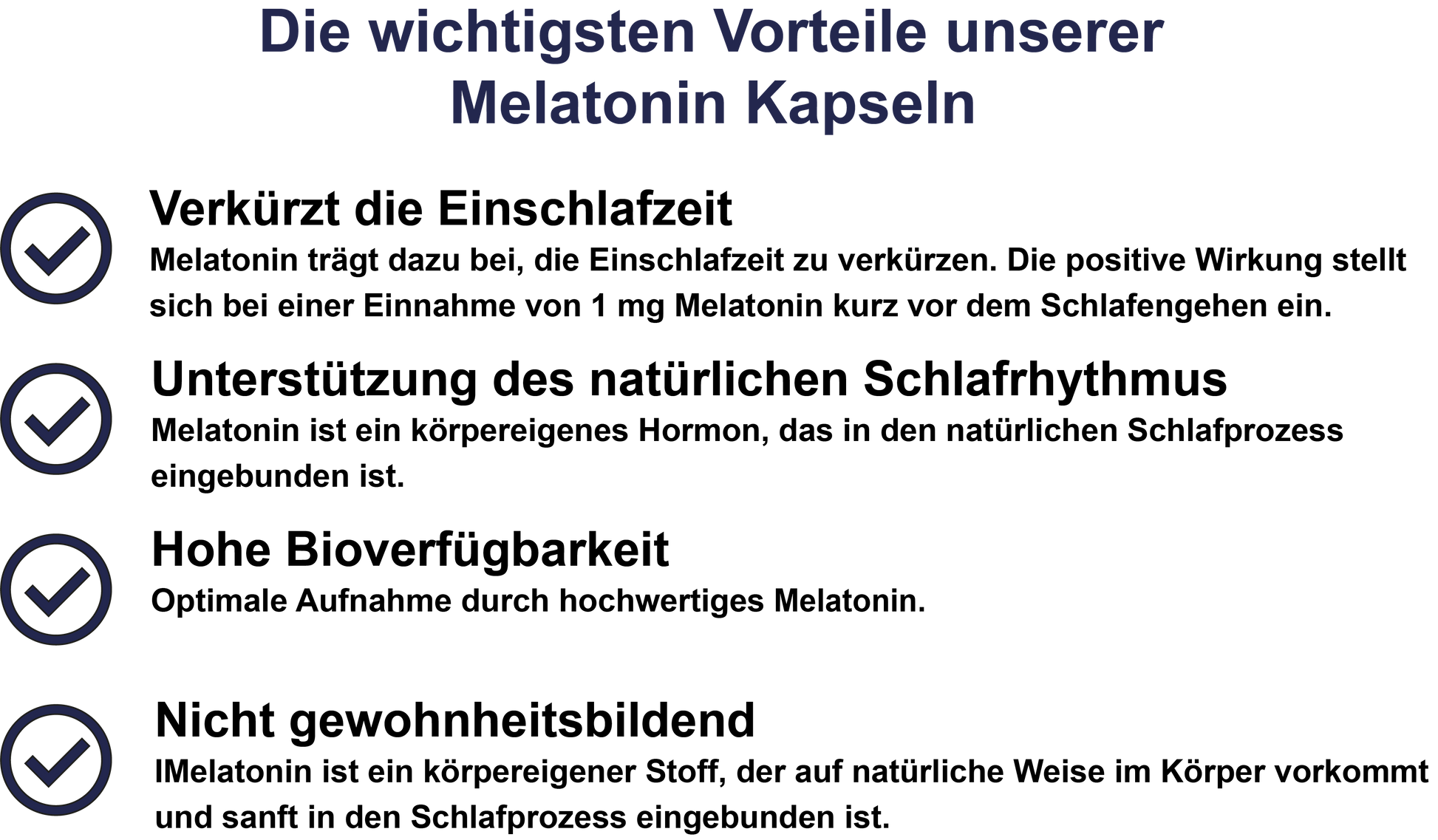 Unsere Kapseln enthalten hochwertiges, gut bioverfügbares Melatonin, das vom Körper effizient aufgenommen werden kann.