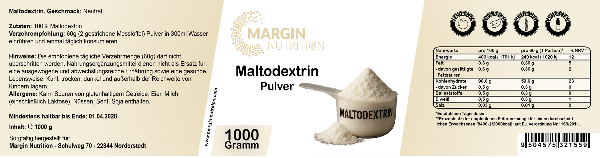 100% MaltodextrinVerzehrempfehlung: