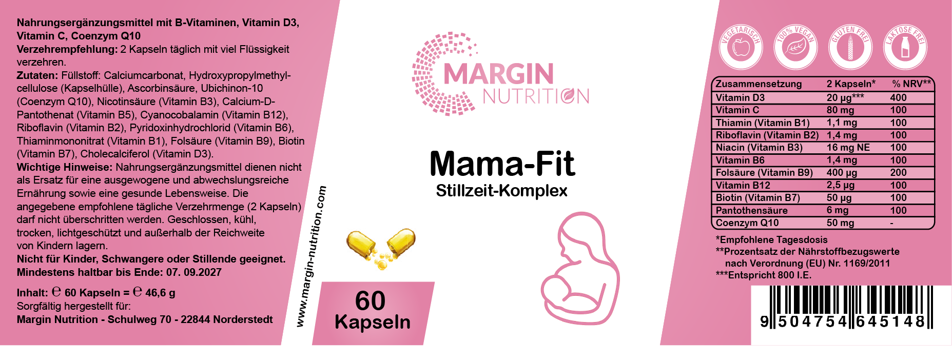 Mama-Fit Stillzeit-Komplex / Mit allen 8 B-Vitaminen, Vitamin C, Vitamin D3 und Coenzym Q10 (30, 60, 2x60, 3x60 Vegane Kapseln)