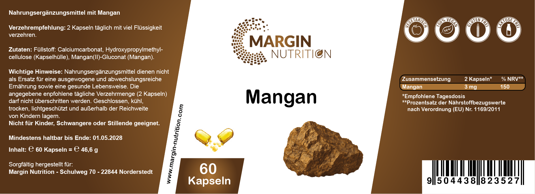 Mangan – Hochdosiert 3 mg pro Tagesdosis | 30, 60, 2×60, 3×60 vegane Kapseln