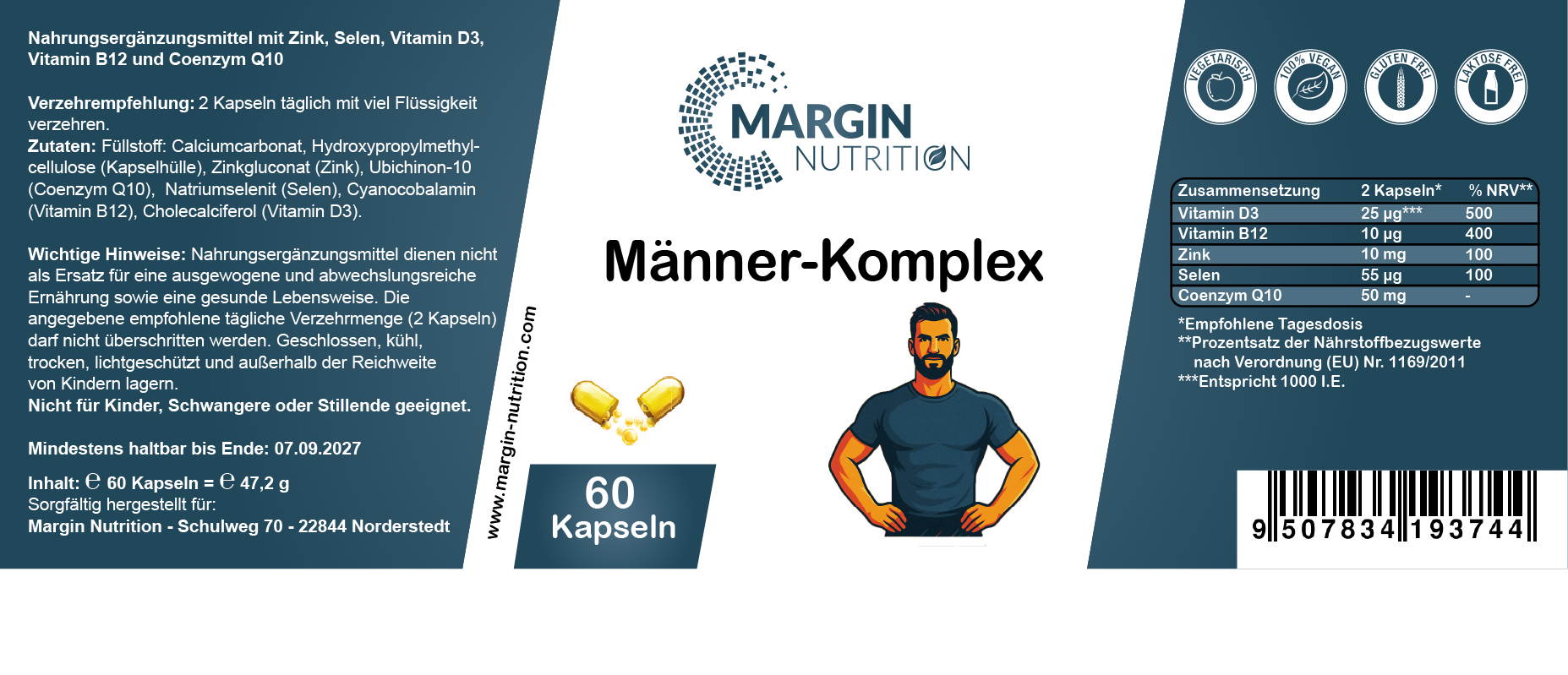Männer-Komplex / Mit Zink, Selen, Vitamin D3, Vitamin B12 und Coenzym Q10 (30, 60, 2x60, 3x60 Vegane Kapseln)